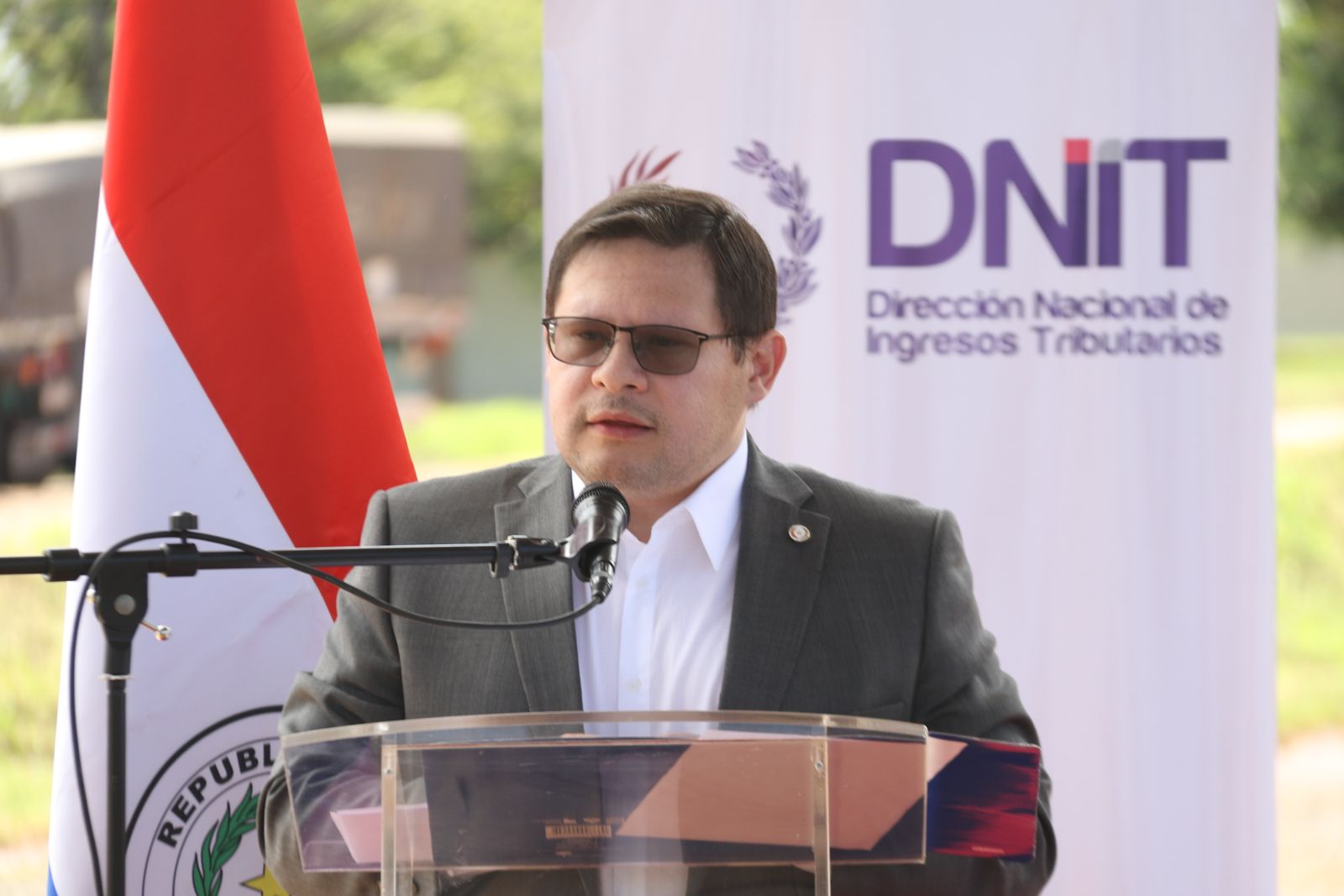 El director Óscar Orué inauguró hoy en Encarnación una plataforma de escaneo y un depósito, con el objetivo de mejorar y acelerar los controles a la carga importada y exportada, además de facilitar y bajar los costos del comercio internacional.