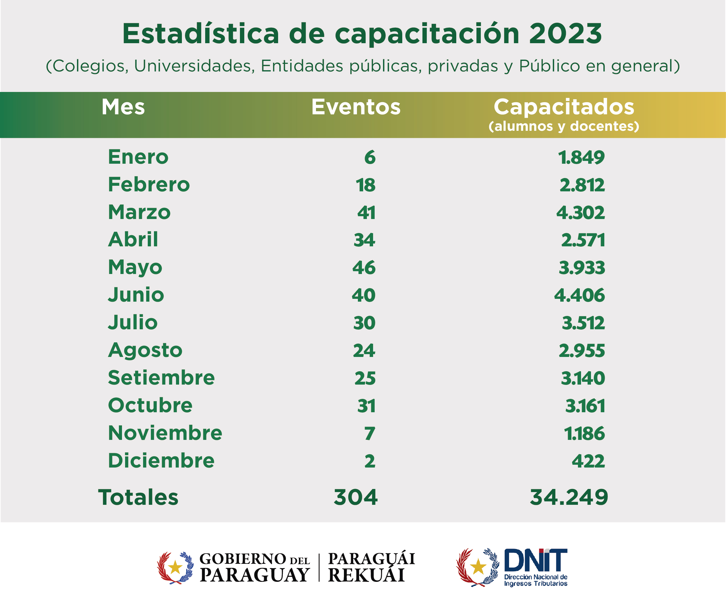 Estadística de Capacitación a Colegios, Universidades, Entidades Públicas, Privadas y Público en General Año 2023