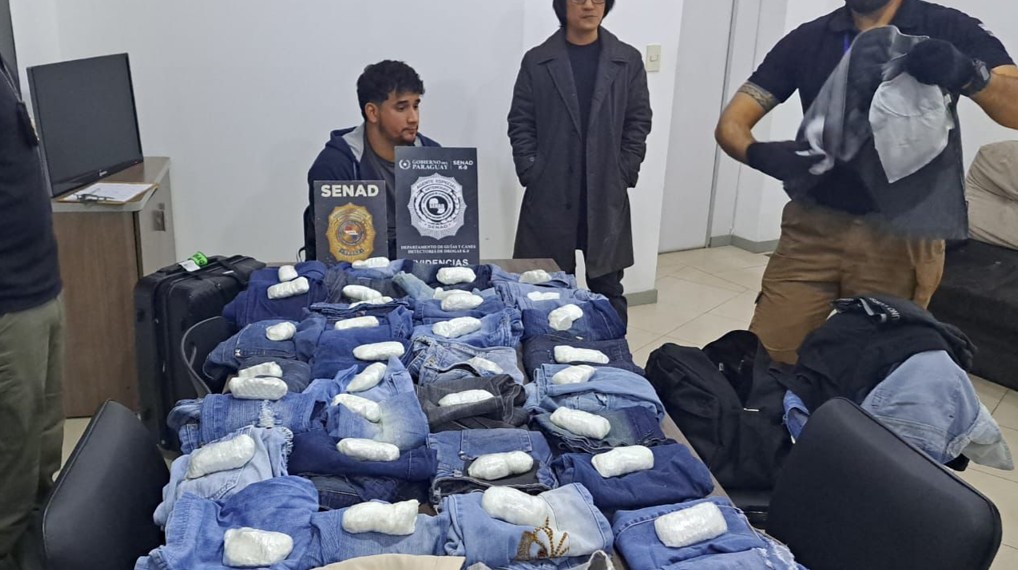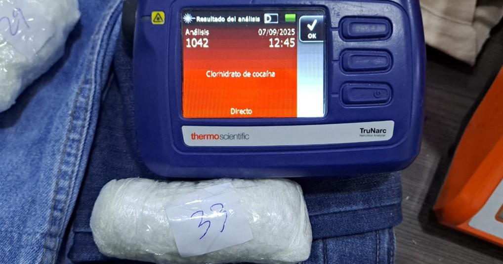 La verificación física alcanzó a una maleta que tenía como destino Madrid, España. El control No Intrusivo de la carga a través del Escáner de Rayos X de la DNIT, detectó en su interior un total de 36 paquetes de presunta cocaína con un total de 3 kilos y 212 gramos, ocultos entre pantalones de jeans.