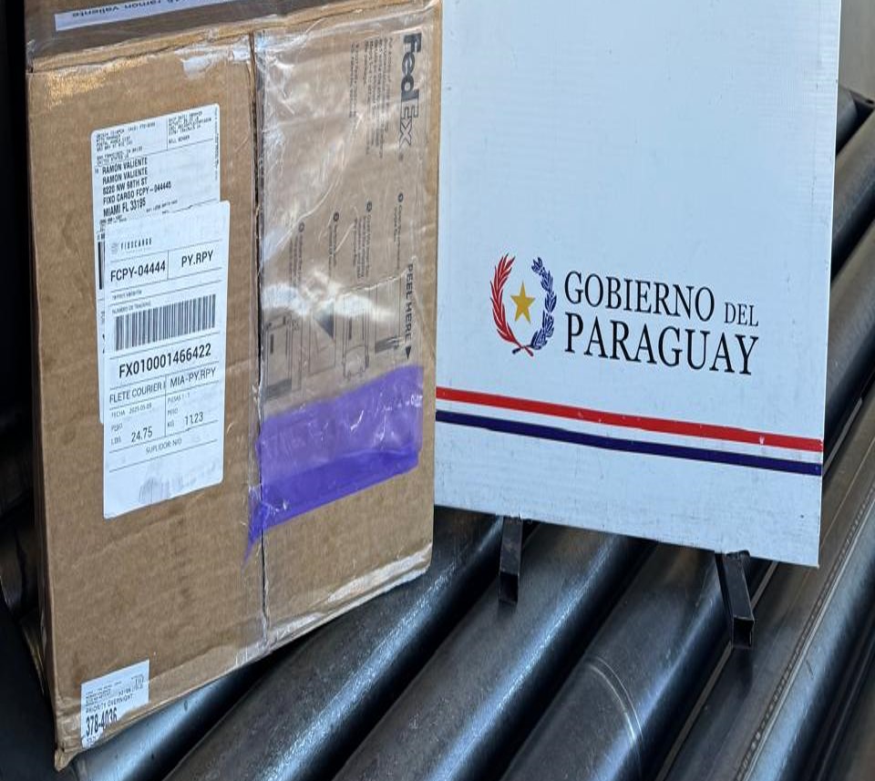 La carga estaba consignada a la firma de remesas SAGA’S S.A., procedente de Miami y consistía en un total de 19 bultos que sumaban 814 kilos. Mediante el perfilamiento de riesgo realizado por el equipo de Visturía y Resguardo de la DNIT, fue seleccionada una caja de 11,23 kg que aparentaba contener cremas corporales. El paquete estaba destinado a un ciudadano identificado como Ramón Valiente, con origen en San Francisco, California.