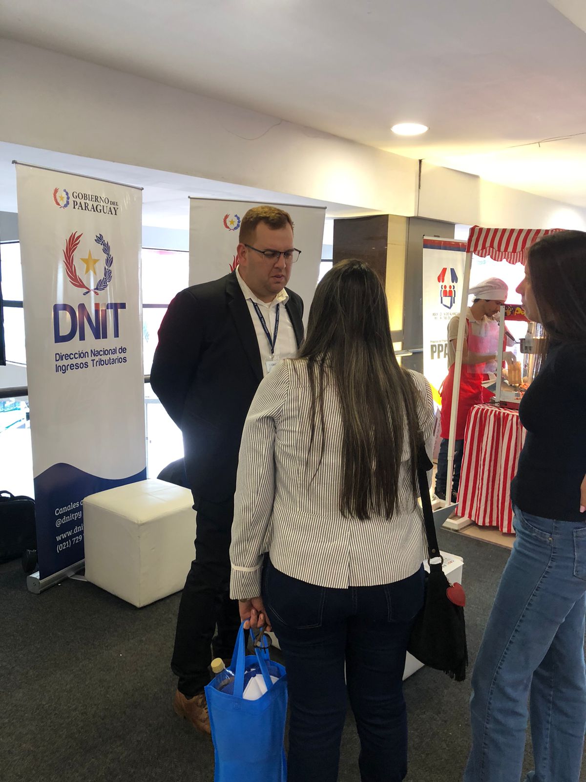 La Dirección Nacional de Ingresos Tributarios (DNIT) participó en la I Edición de la Expo Almaceneros 2026, realizada los días 9 y 10 de abril en el Salemma Fuente Shopping, en la ciudad de San Lorenzo, en respuesta a una invitación de la Asociación de Almaceneros Minoristas del Paraguay (AMP), organizadora del evento.